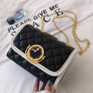 GIRL’S QUILTED SHOULDER BAG WITH CONTRAST PIGING- BLACK