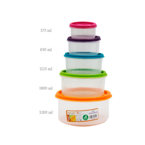 48PCS ASSORTED COLOR PLASTIC FOOD CONTAINER- SET 5PCS