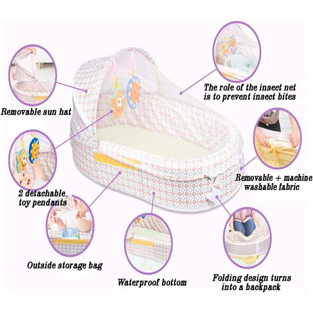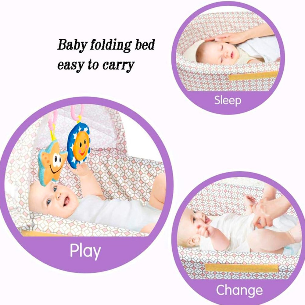 FOLDABLE BABY CRIB BABY TRAVEL BED WITH MOSQUITO NET- PINK