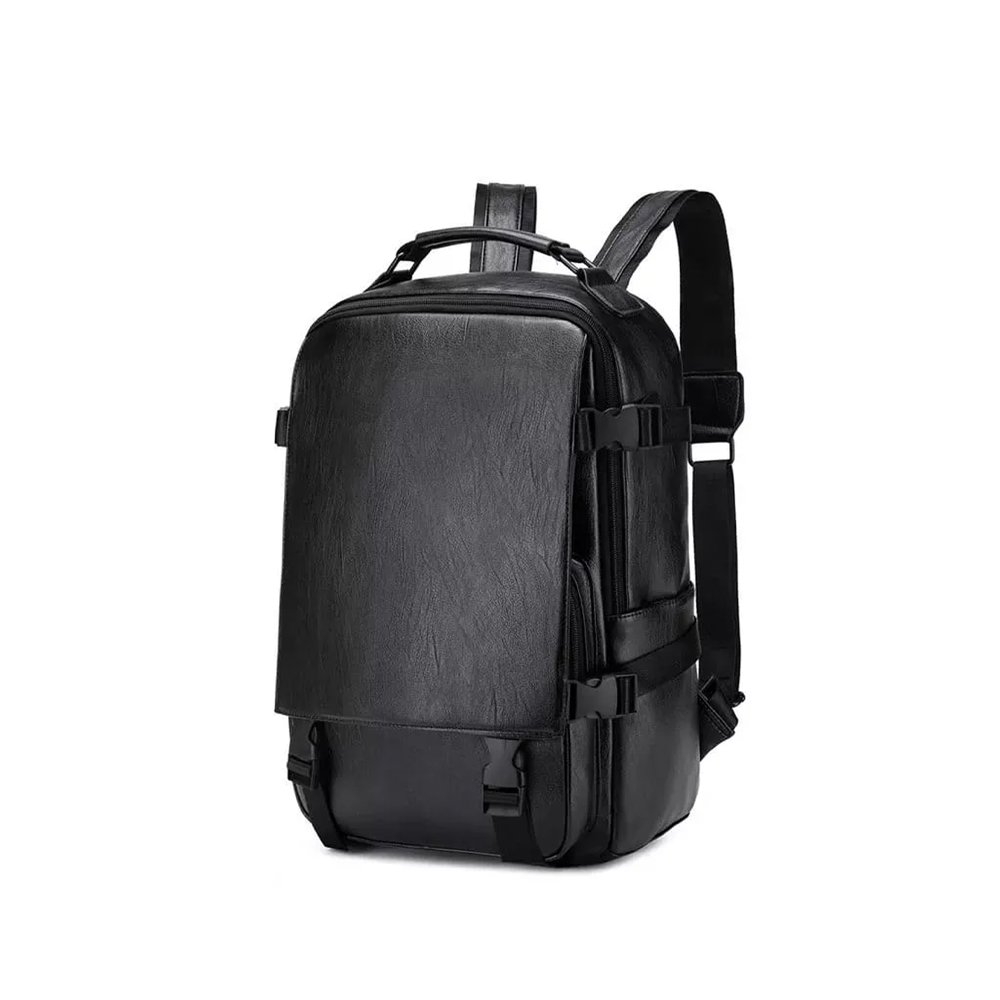 MEN PU LEATHER BACKPACK 15.6 INCH LAPTOP BOOKBAG- BLACK
