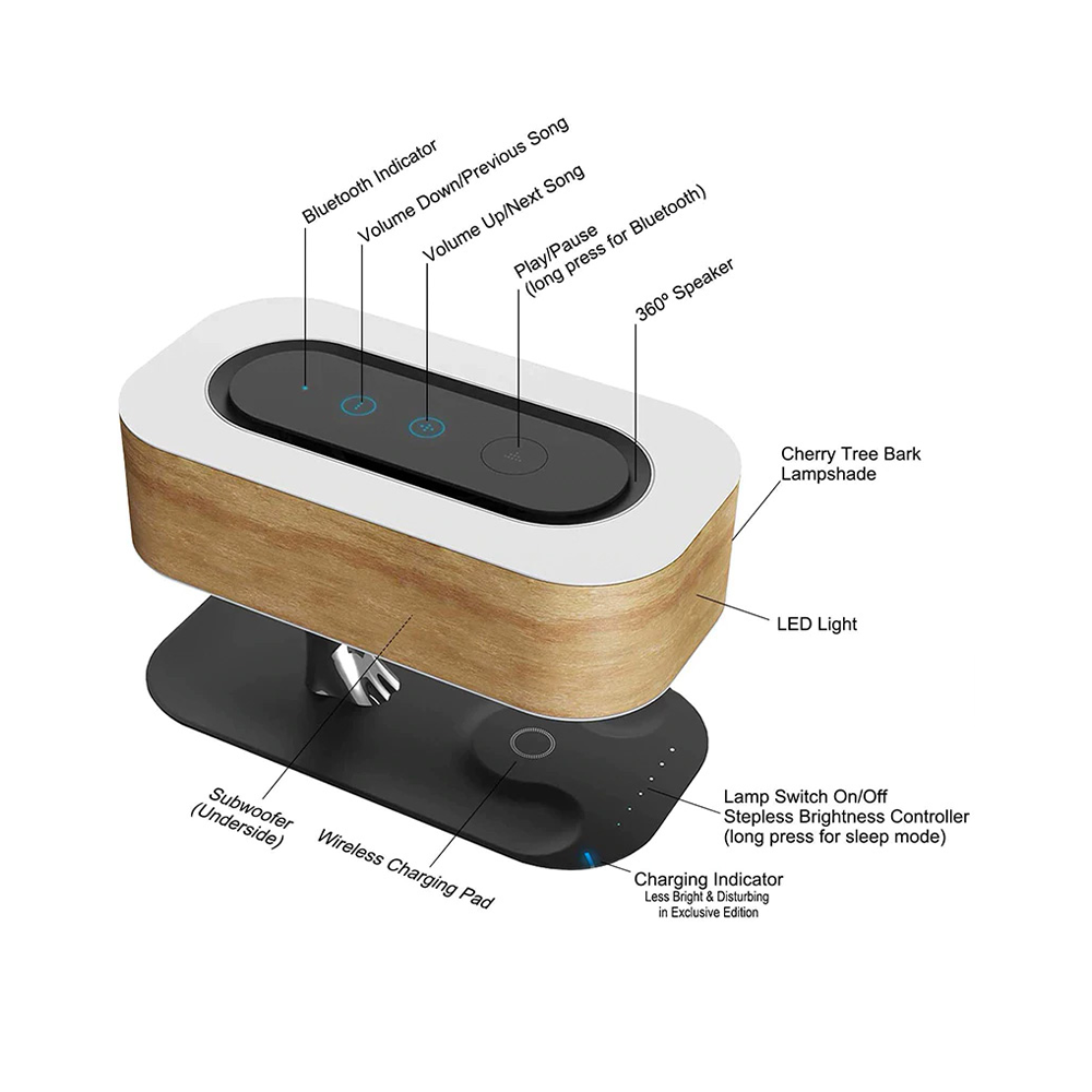 LED SMART TABLE LAMP- TWS BLUETOOTH SPEAKER AND Qi WIRELESS