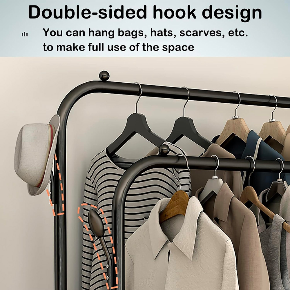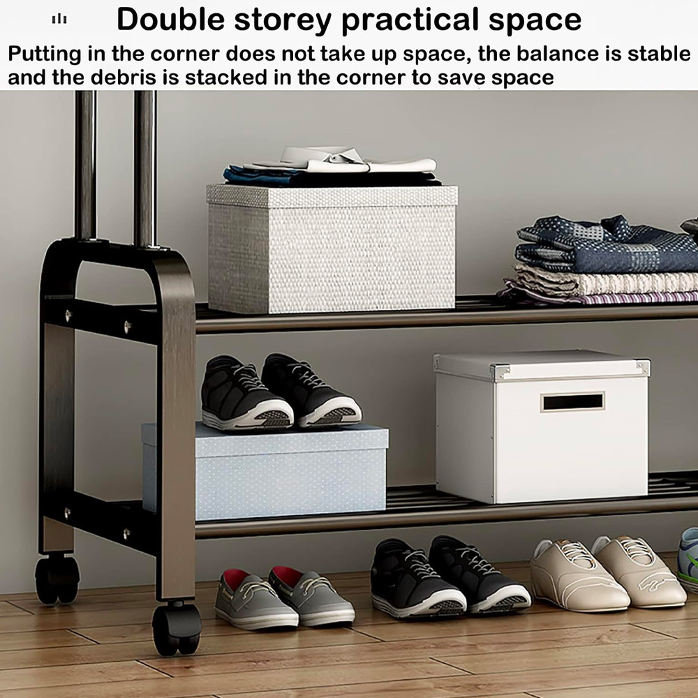 MOBILE CLOTHES RACK WITH WHEELS, METAL CLOTHES WITH SHELVES- WHITE