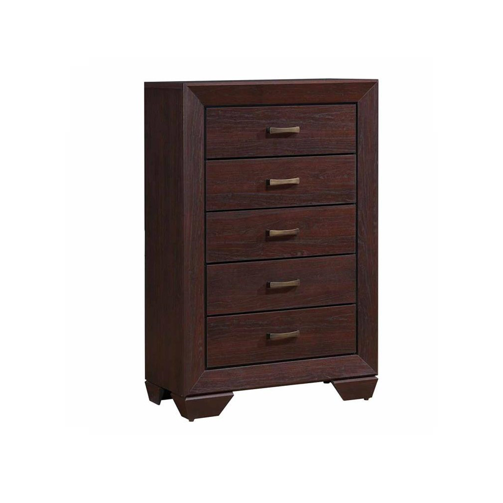 5-PC BROWN/ DARK COCOA WOOD FULL BEDROOM SET:
