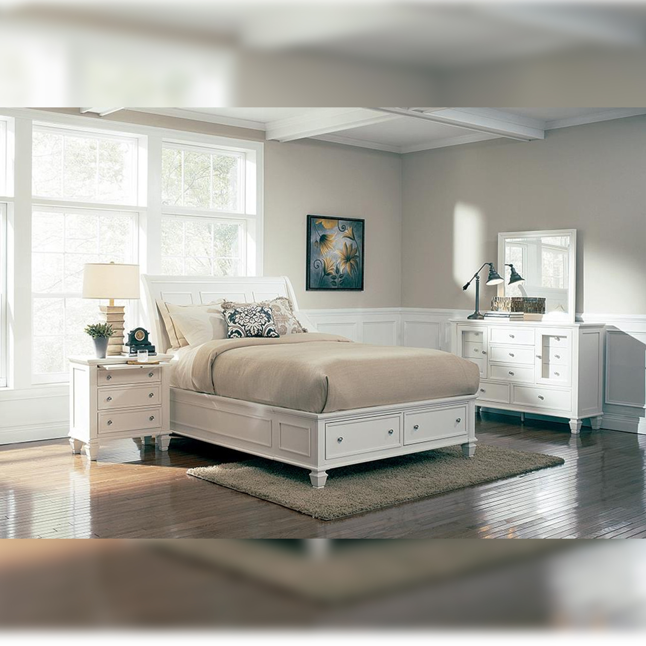 COASTER STORAGE SLEIGH WHITE BEDROOM SET- 4PCS:
