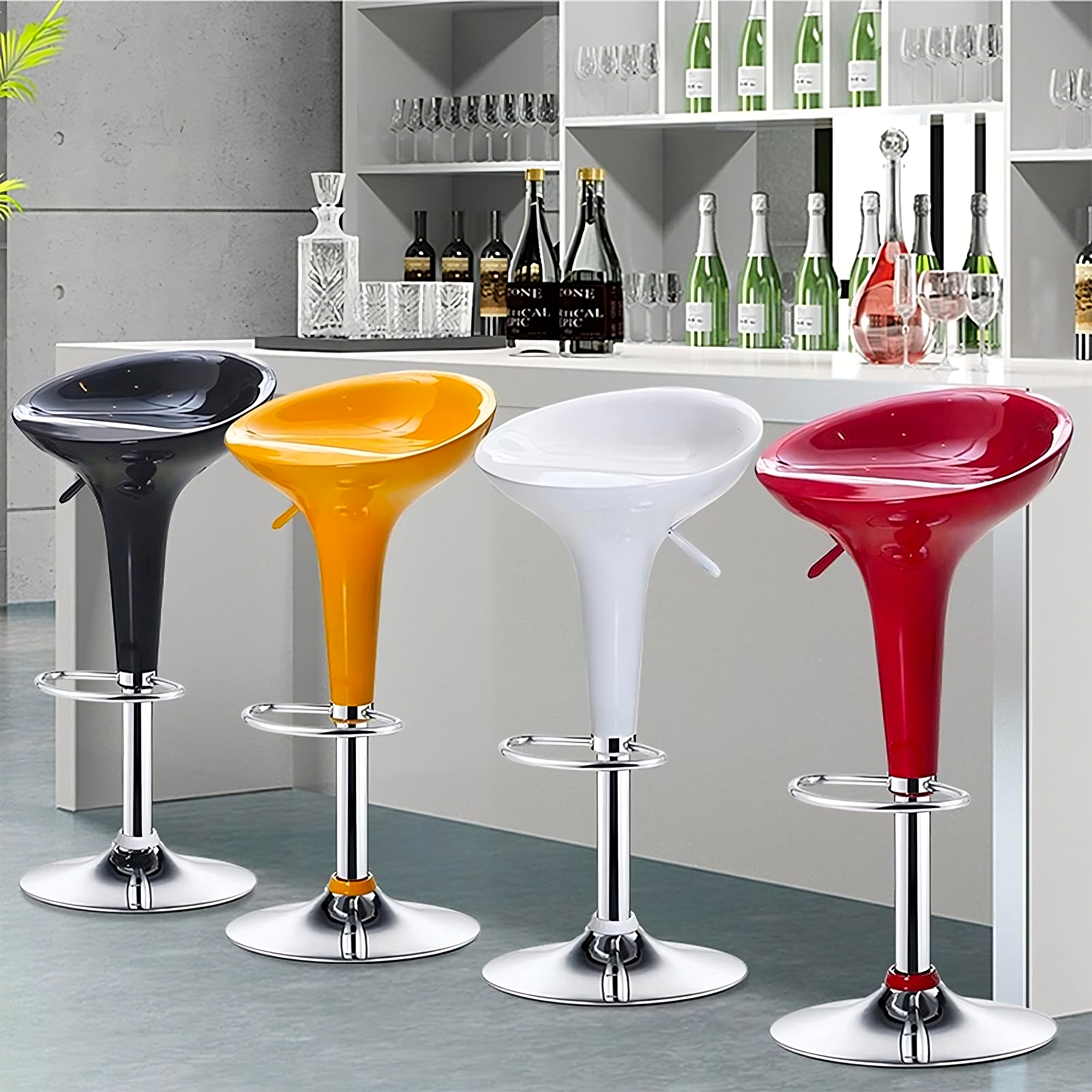 KITCHEN BAR STOOLS, MODERN DESIGN, CHROME STEEL BASE- BLACK