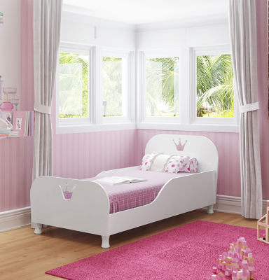 GIRL OR BOY CLOUD-SHAPPED SINGLE BED, SLATTED, VELVET- PINK AND WRITE