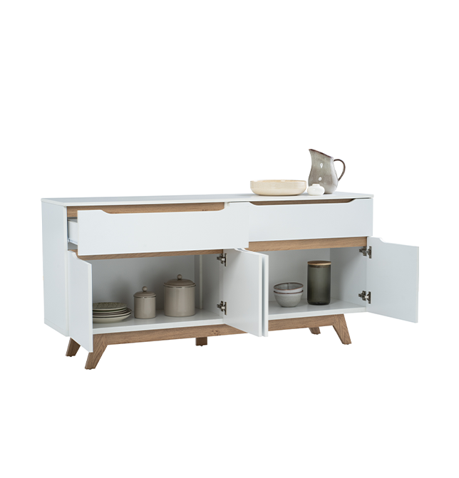 SCANDINAVIAN MATTE WHITE AND LIGHT WOOD BUFFET