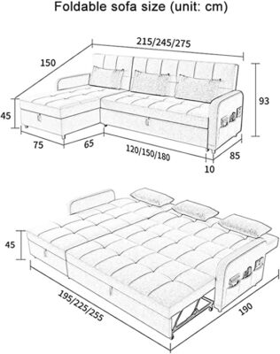 SOFA BED WITH PULL-OUT BED (SIZE:275CM)- GREY