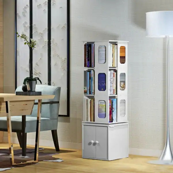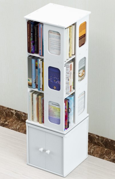 ROTATING, BOOK RACK, BOOKSHELF MULTI-TIERS- WHITE (3 LAYERS)