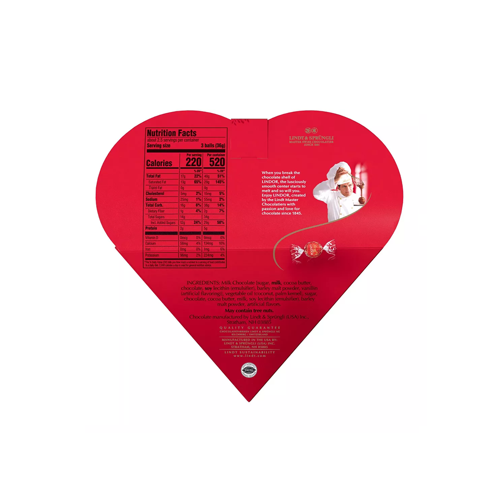LINDOR VALENTINES MILK VALENTINES CHOCOLATE TRUFFLES HEART- 3OZ