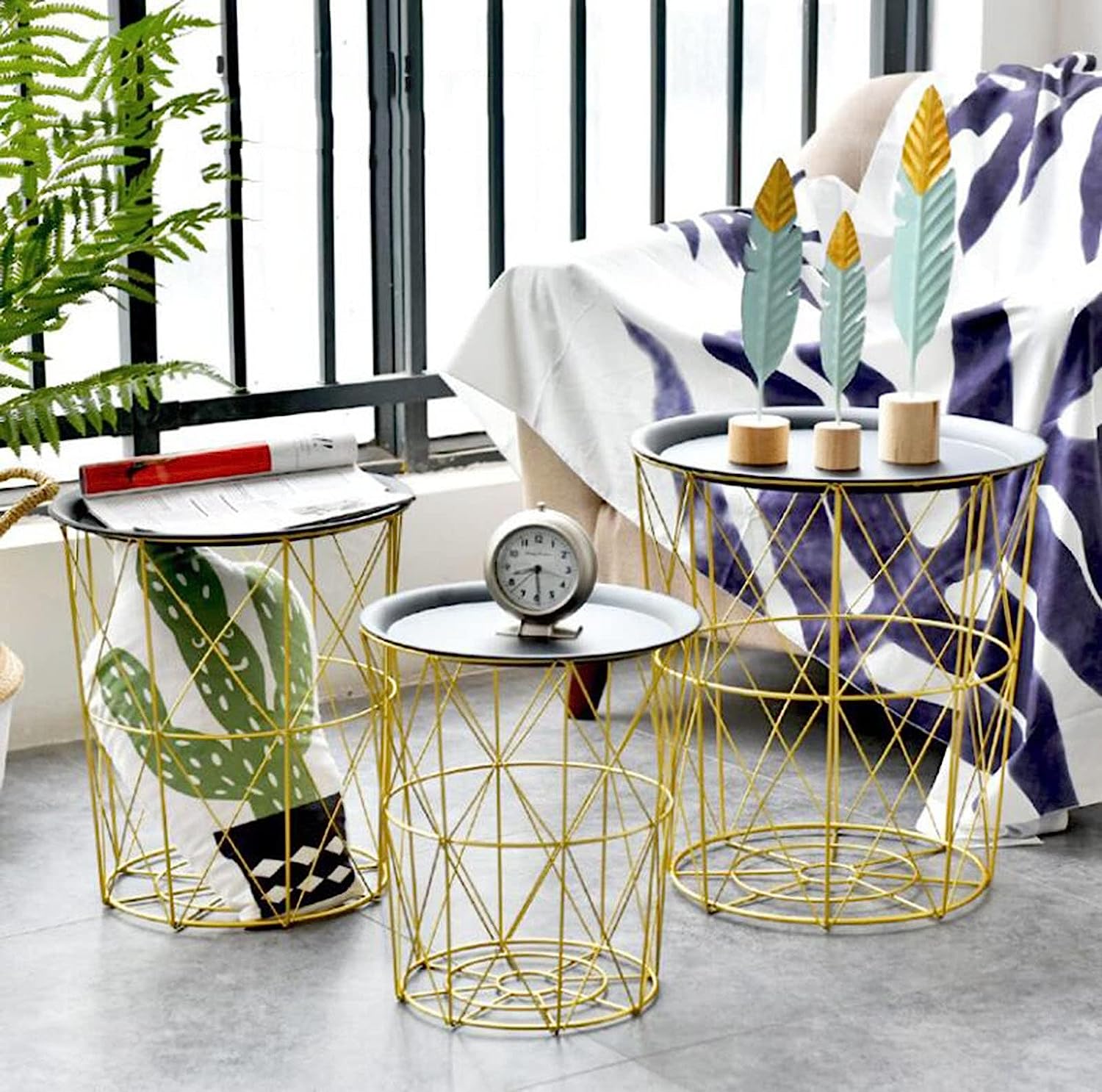 BED STAND SIZE: 40*43CM (1PCS), CONTEMPORARY METAL SIDE TABLE WITH REMOVABLE TRAY