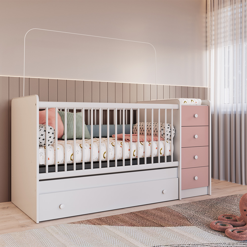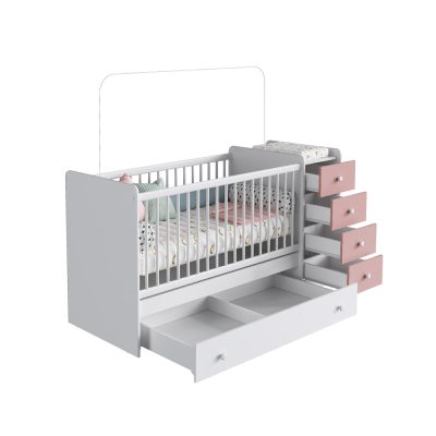 THE BABY BED TRANSFORMS INTO: DESK, WARDROBE, TEENAGER BED