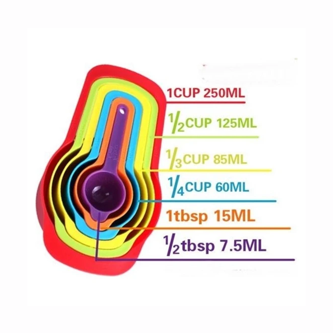 FREE SAMPLE ECO-FRIENDLY MEASURING, CUP PLASTIC MEASURING, CUP 6-PIECE BAKING TOOL SET RAINBOW COLOR, COMBINATION MEASURING SPOON