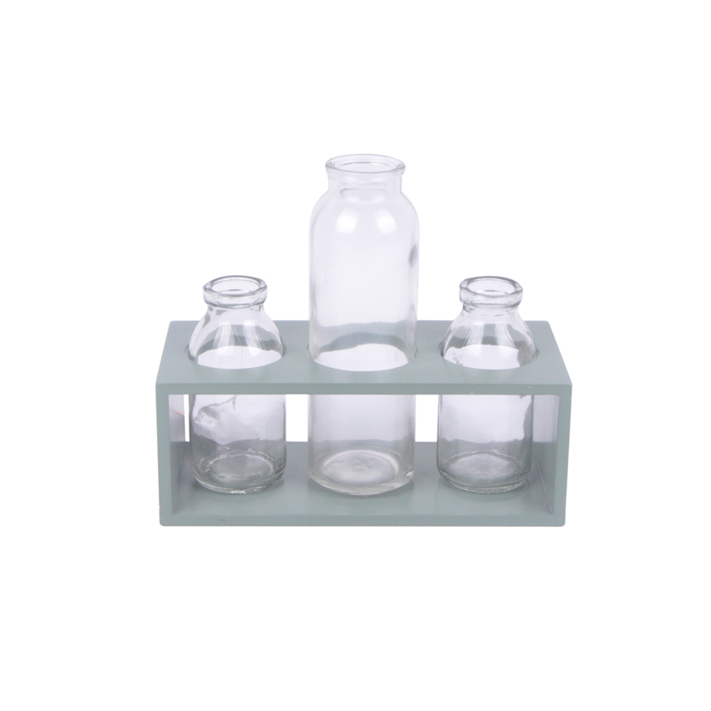 SET OF 3 PCS GLASS VASE WITJ MDF STAND