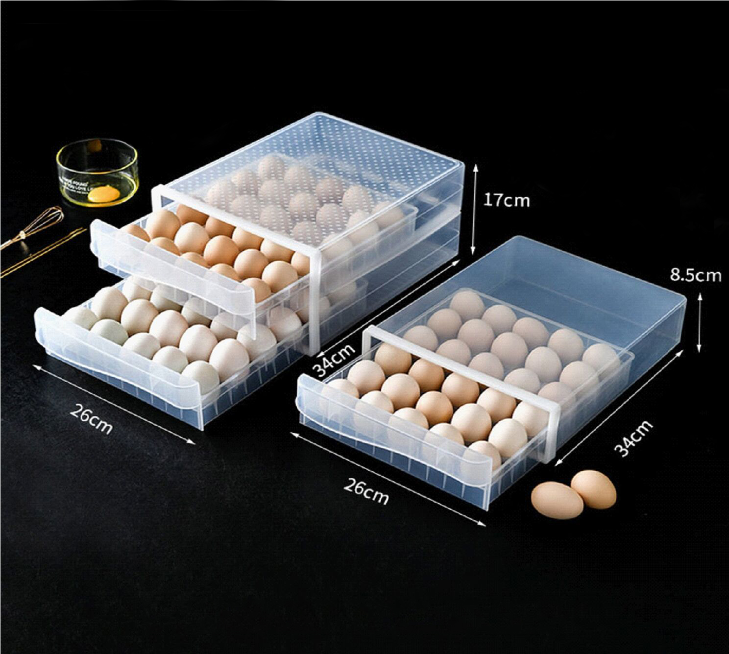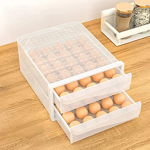 TRANSPARENT PLASTIC KITCHEN DRAWER TYPE 60 GRID DOUBLE LAYER STACKABLE CHICKEN EGG:
