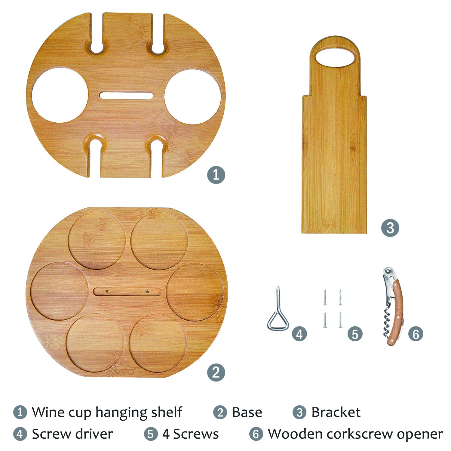 WINE BOTTLE HOLDER GLASS CUP RACK W/HANDLE FREE WOOD HANDLE CORKSREW
