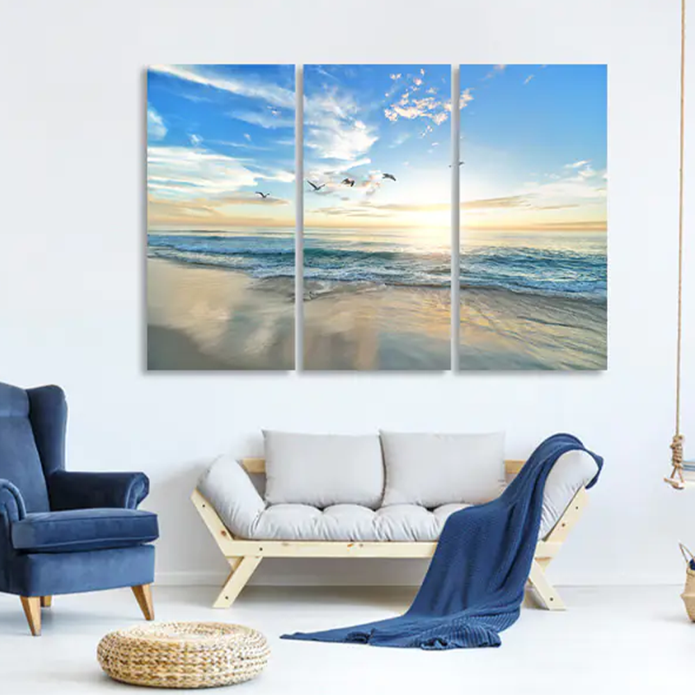 3 PIECES CANVAS PRINT THE SEAGULLS AND THE SEA AT SUNRISE 90 x 60 CM(3 x 30 x 60CM)